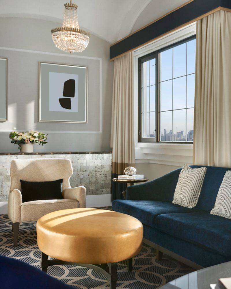 Art Deco-inspired design. Bedroom with sitting area, and luxurious marble spa bath. Separate parlour with wood walls, able to host a gathering up to 20 people. City skyline views. Fairmont Gold access includes complimentary European breakfast.
