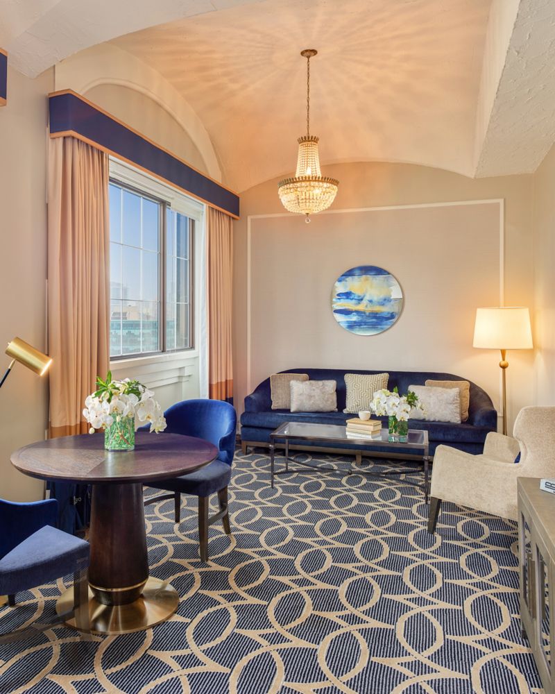 Ideal for couples or a family of 3, defined sitting area with a sofa bed. These suites feature elegant design with modern updates and unique historic architectural details. Walk-in shower