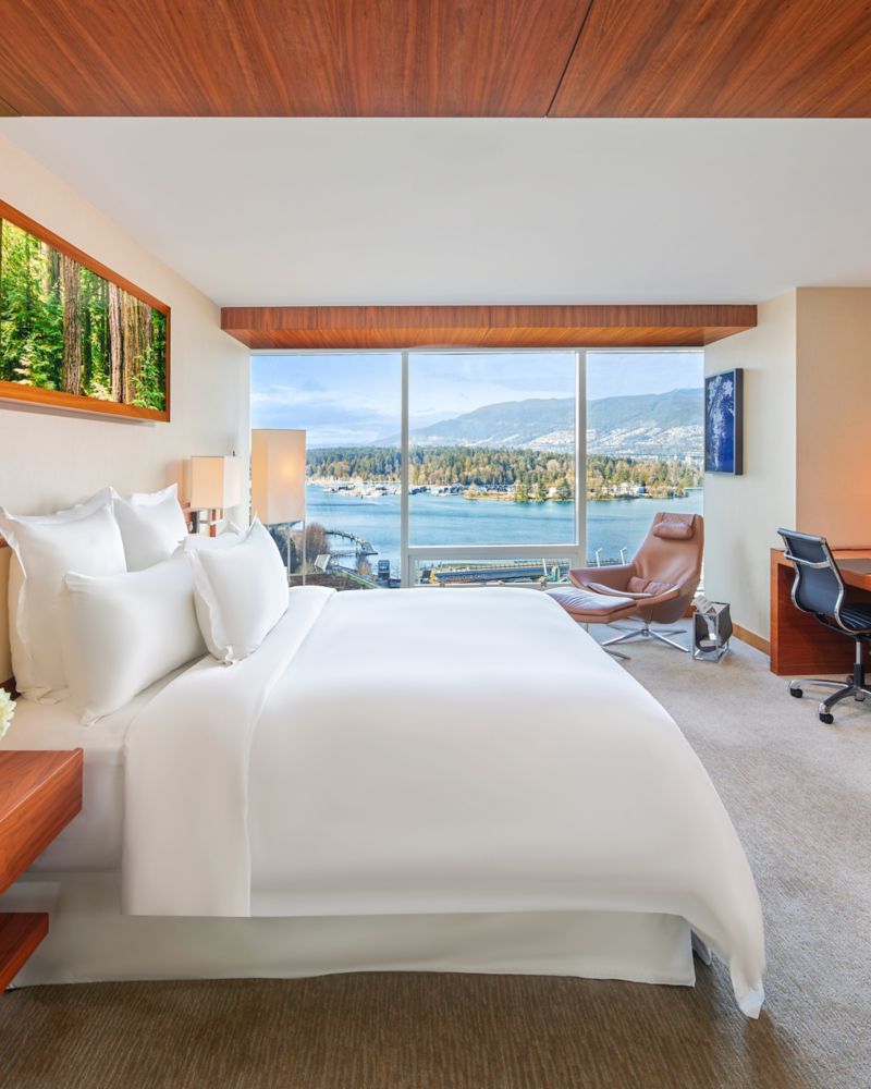 Signature Harbour View rooms boast spectacular views of Vancouvers Coal Harbour, Stanley Park or North Shore Mountains. These modern contemporary rooms offer luxurious oversized marble bathrooms with spa shower or spa shower and tub combination.