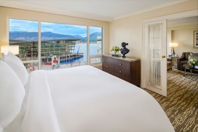 Located on the 3rd to 6th floors, these bright junior suites offer partial harbour views and spacious comfort in a luxury Vancouver waterfront hotel. A king bedroom connects to a separate parlour via French doors - ideal for business travellers needing extra space and offering a pullout sofa bed for small families.