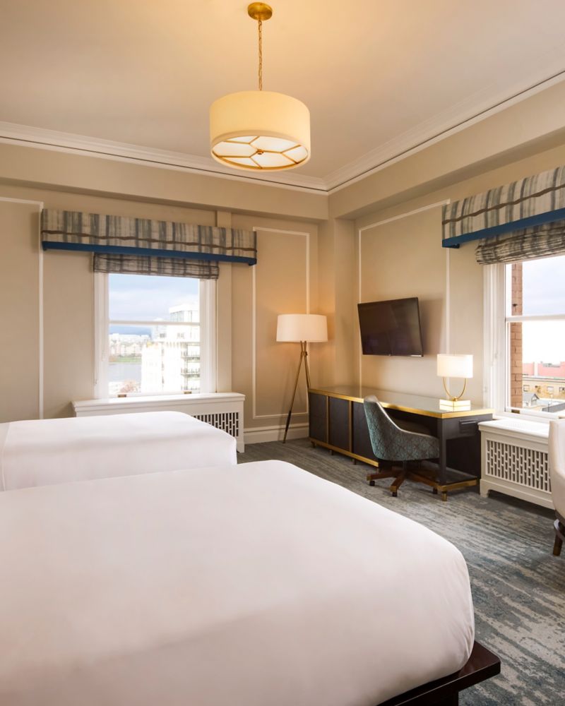 Spectacular harbour view. Airy and inviting, this queen room design brings the outside in. These well-appointed rooms have a classic-meets-contemporary design inspired by Vancouver Island nature