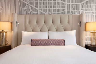 With dedicated dining and living spaces, the Ambassador Suite allows guests extra space for small gatherings and a private bedroom with one king bed. Great for business meetings or when traveling with family. Connecting Deluxe rooms are available.