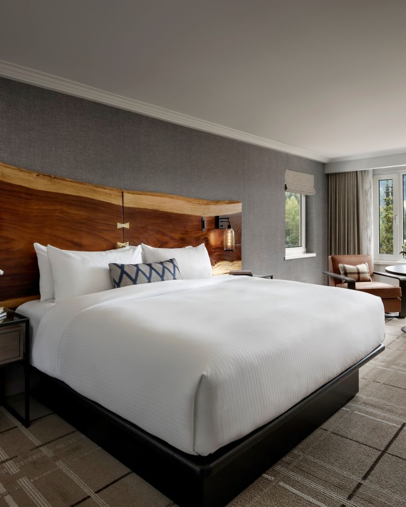 Unwind in style and comfort in the Deluxe View Room offering stunning vista views. This spacious room features a comfortable lounge area, perfect for relaxing after a day of exploring Whistler. Whether you're traveling with family or friends, the Deluxe View Room offers one king bed or two queen beds, comfortably accommodating up to four guests.