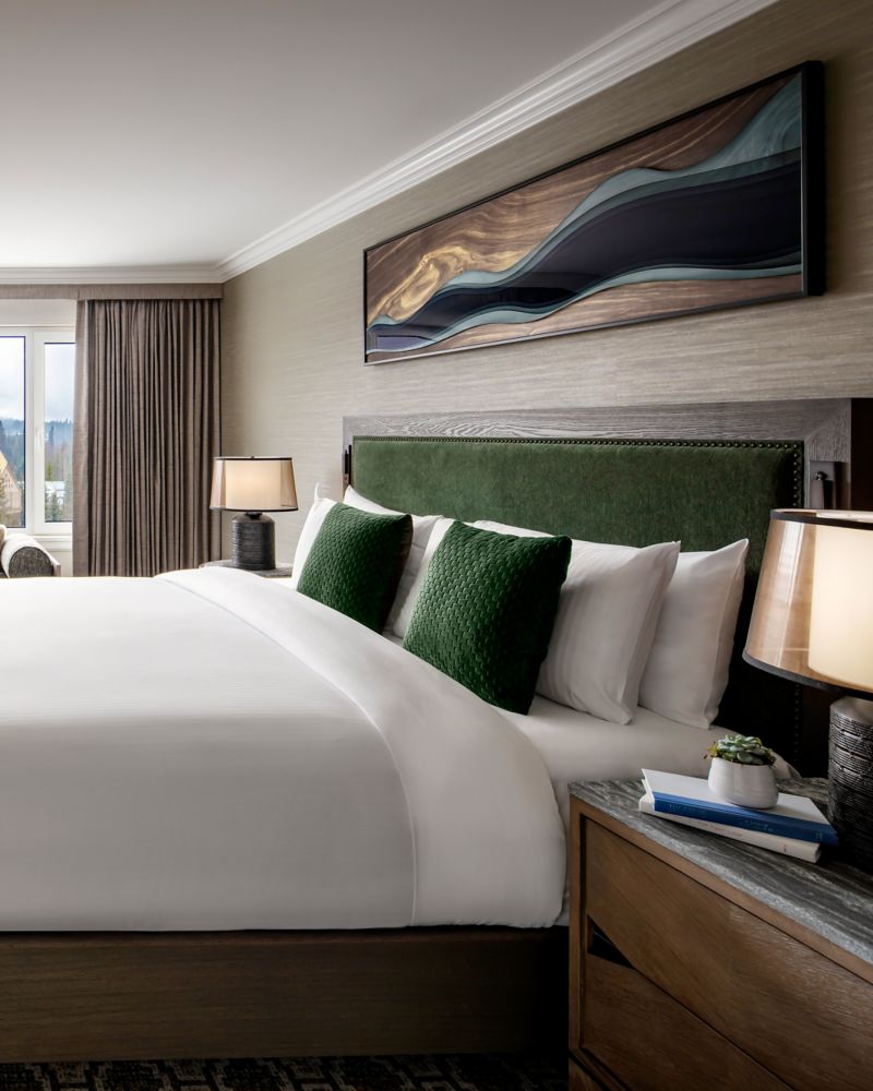 Junior Valley View Suites feature Rainbow Mountain and Whistler Valley Views, 1 King Bed and Double Sofa Bed, Spacious open layout, separate living area with sliding louvre doors, and 4 piece bathroom and 2 televisions. (475 sq.ft /44 sq.m)