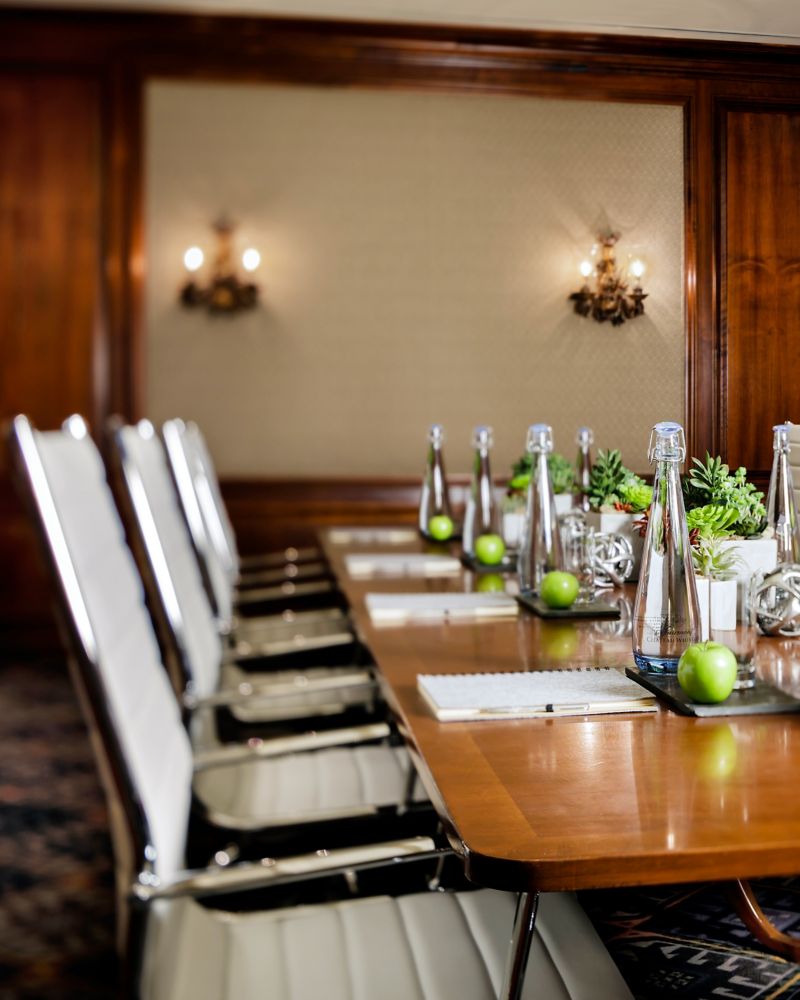 This executive boardroom in the North Wing offer the perfect place for meetings up to twenty people. Designed to encourage productivity while meeting all technological requirements for business, this intimate space creates an atmosphere for both concentration and conversation.