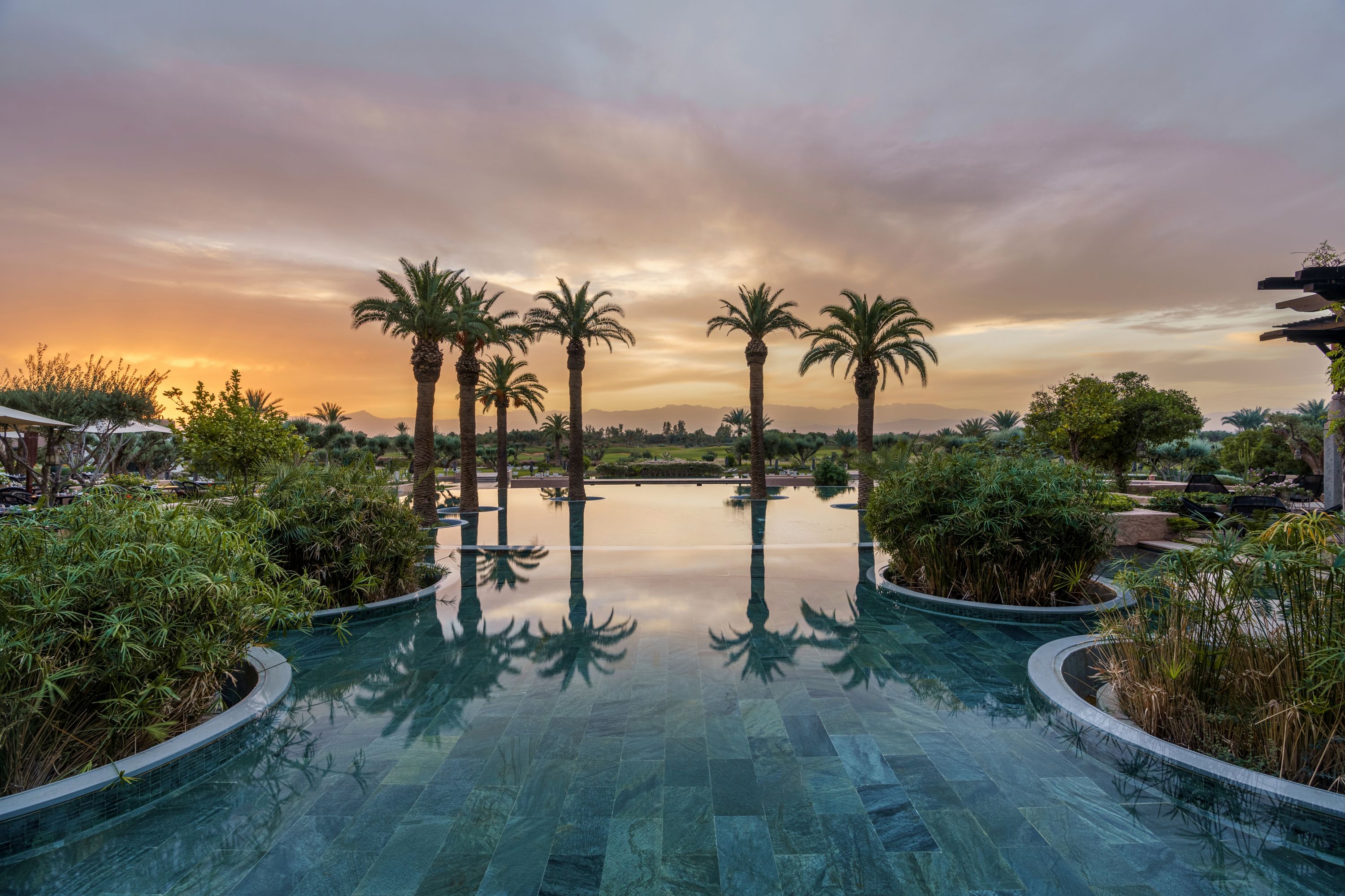 Our expansive estate encircled by the Atals Mountains is your canvas. Find restoration through open-air fitness amidst ancient olive groves and sensory rituals infused with local botanicals. Unwind in Marrakech's largest pool with mountain and golf course views.