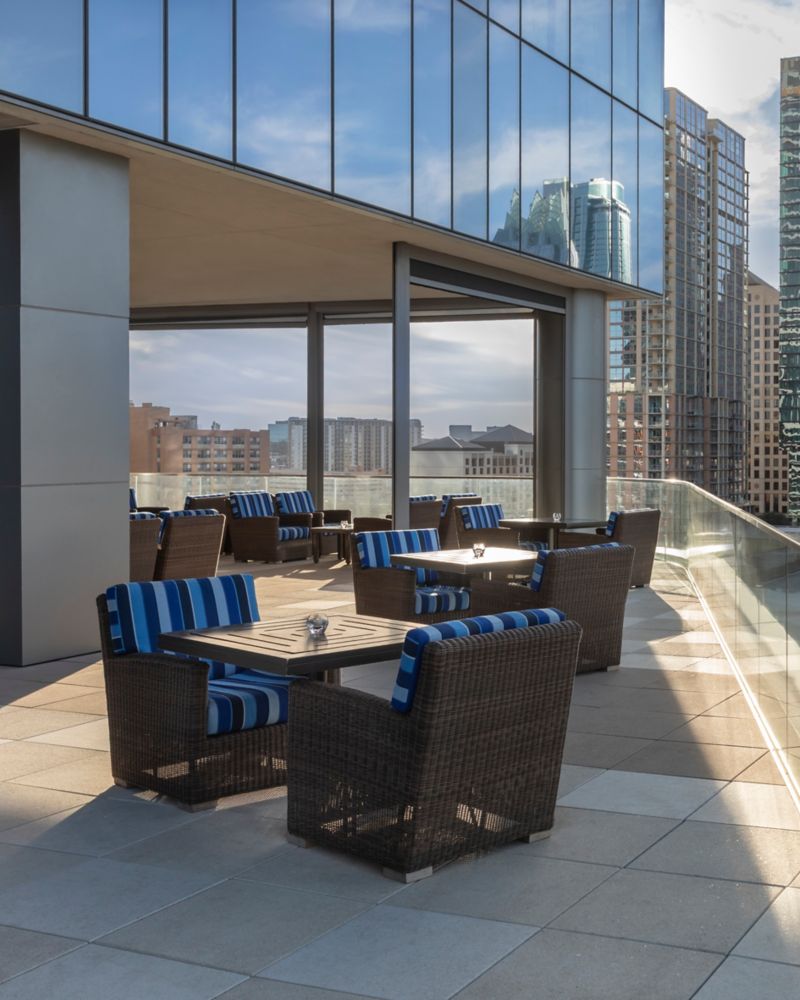 Con especial atención a las bebidas y situado en el vestíbulo principal, esta zona común homenajea las animadas calles de Austin con música en vivo, y las profundas raíces de la gran encina de Fulton, Texas. Este es el lugar nuevo de encuentro de Austin