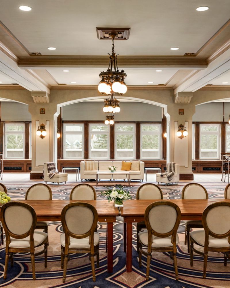 Ubicadas en el edificio del hotel principal, estas dos habitaciones cuentan con 791,5 metros cuadrados (8520 pies cuadrados) de espacio de eventos con un impresionante vestíbulo. El salón con vista al río, al campo de golf Stanley Thompson, al río Bow y a las montañas cubiertas de nieve de Palliser Range, es el lugar perfecto para una pausa para el café o una recepción de gala.