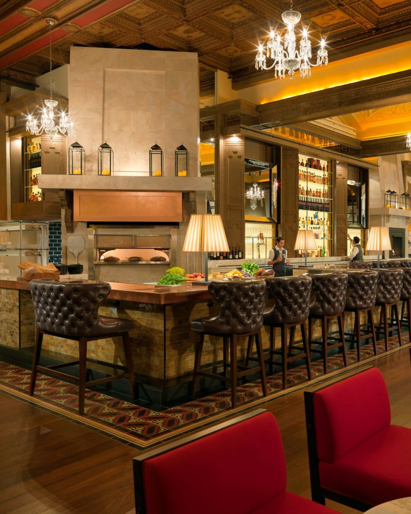 Recently voted "#1 Hotel Bar," OAK Long Bar + Kitchen offers an unforgettable food and beverage experience in one of the most iconic dining rooms in the city. It features exceptional craft cocktails, classic American wines, and a local and seasonal menu.