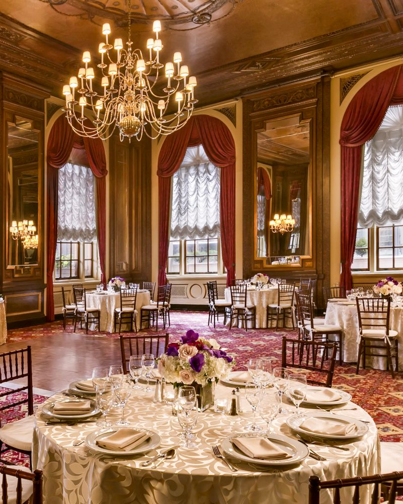 The St. James Room is connected to the Copley and Singleton Rooms which feature a double-sided antique fireplace and provide additional space for a cocktail reception and dancing.