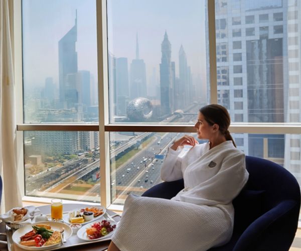 Our guest rooms feature soaring views of Dubai skyline, whether looking towards the stunning cityscape or Arabian Gulf