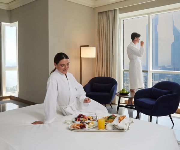 Our guest rooms feature soaring views of Dubai skyline, whether looking towards the stunning cityscape or Arabian Gulf