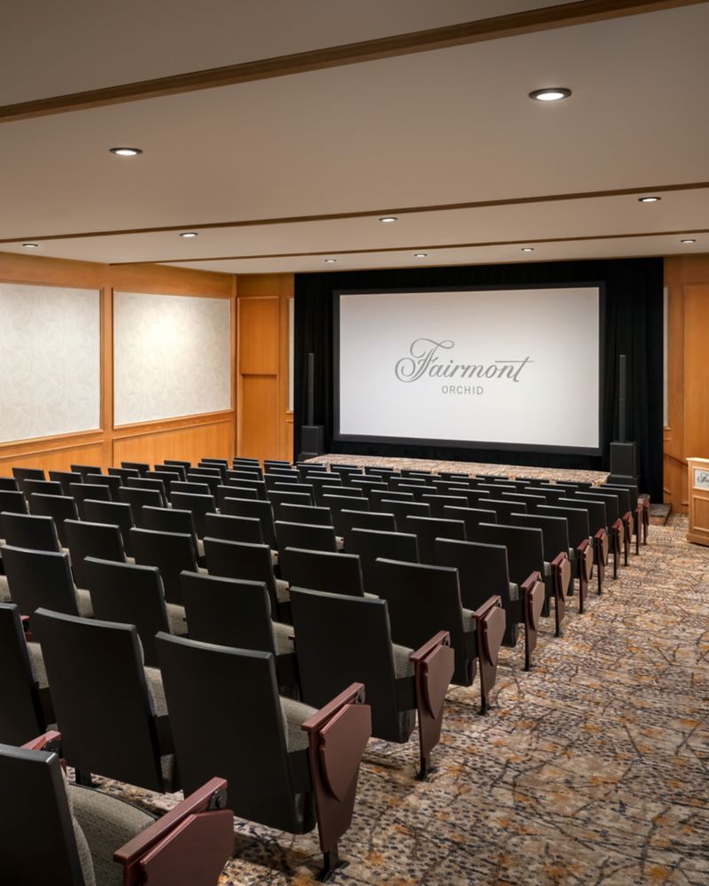 Fairmont Orchid offers the only indoor theater on the island of Hawaii. The Lehua Theater features 138 fixed theater seats with flip-over table, a stage, and podium. Our in-house audio-visual services will assure a picture-perfect presentation on the 16' x 9' scree with HD projector and sound system. Located on the garden level.