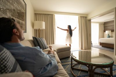 These coveted 860-square-foot one-bedroom suites boast unparalleled views of the ocean, resort and its lush tropical landscaping.