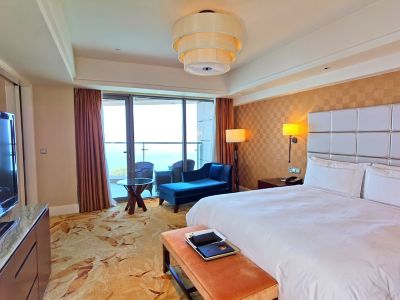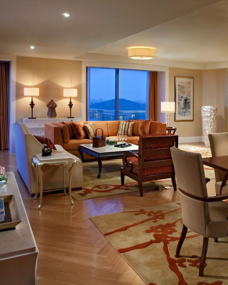 It offers an impressive view of the lake from the top of the hotel, and also a private balcony. The décor is Asian-inspired, and offers a separate parlour area, designed for visits from friends or for a family gathering.