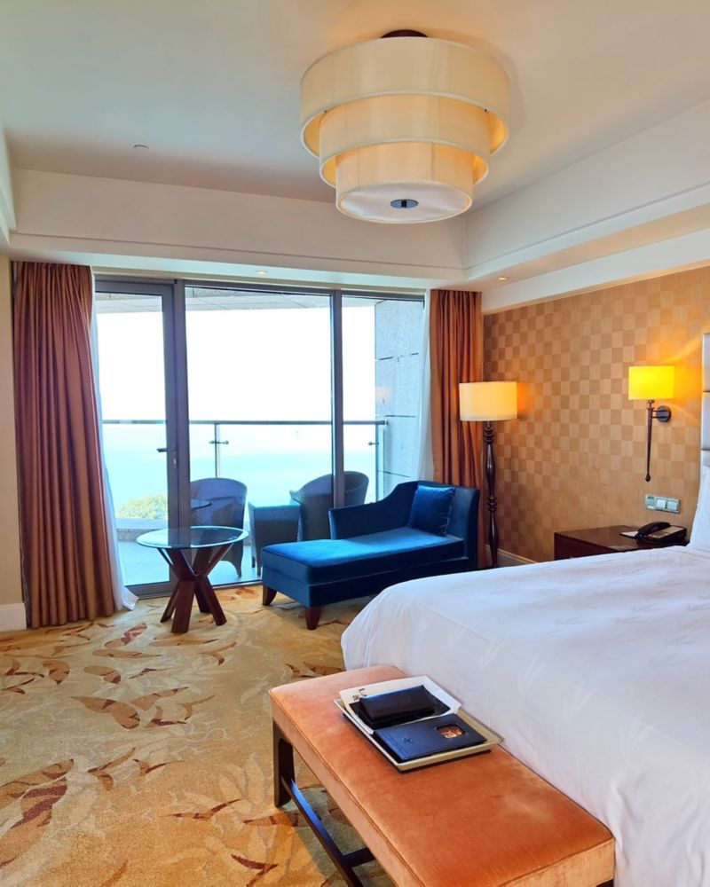 La habitación ofrece vistas idílicas al lago Yangcheng a un maravilloso atardecer. La mayoría de las habitaciones están equipadas con balcón privado, ventanales, colchón Sealy y bañera.