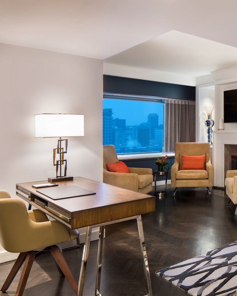 Suite Fairmont Gold en planta ático con salón, baño de lujo con spa, Chromecast y acceso al salón Gold con desayuno continental de lujo y hors d'oeuvre durante la hora del cóctel