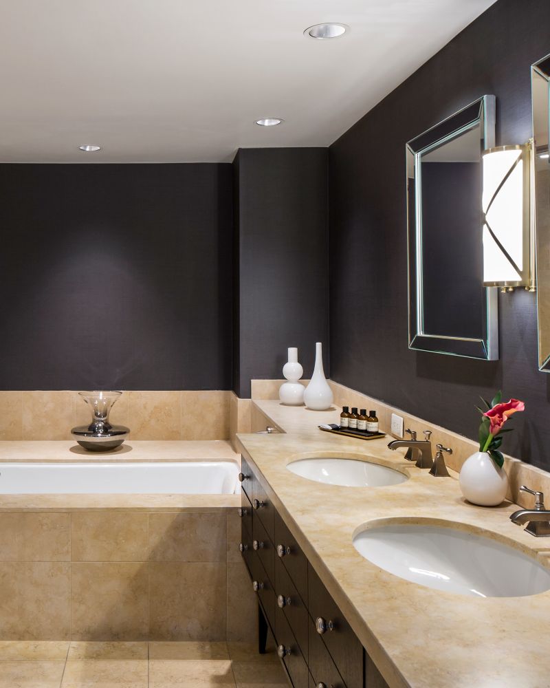 La suite incluye comedor, cocina americana, bar, baño de lujo con spa y acceso al salón Gold con desayuno continental de lujo y hors d'oeuvre durante la hora del cóctel. Suite comunicada disponible
