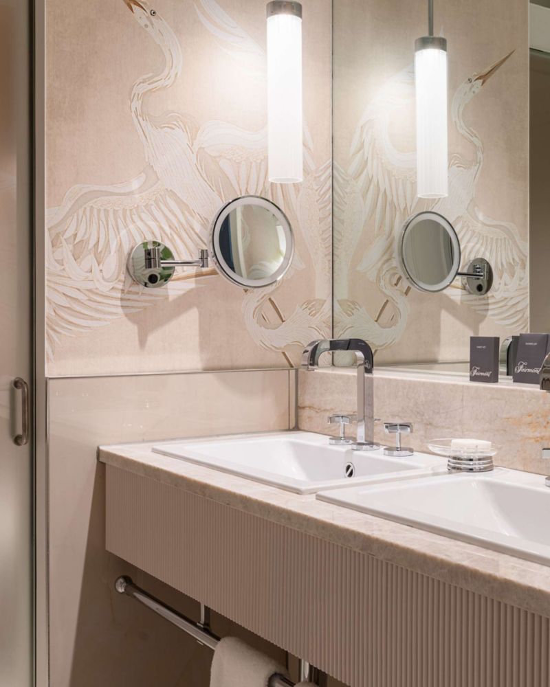 Renovated in a modern and elegant décor, the Fairmont Lake View Rooms are furnished with one Queen or Twin bed, they are equipped with the following amenities: a flat screen television, a working desk, coffee making facilities, and deluxe toiletries.