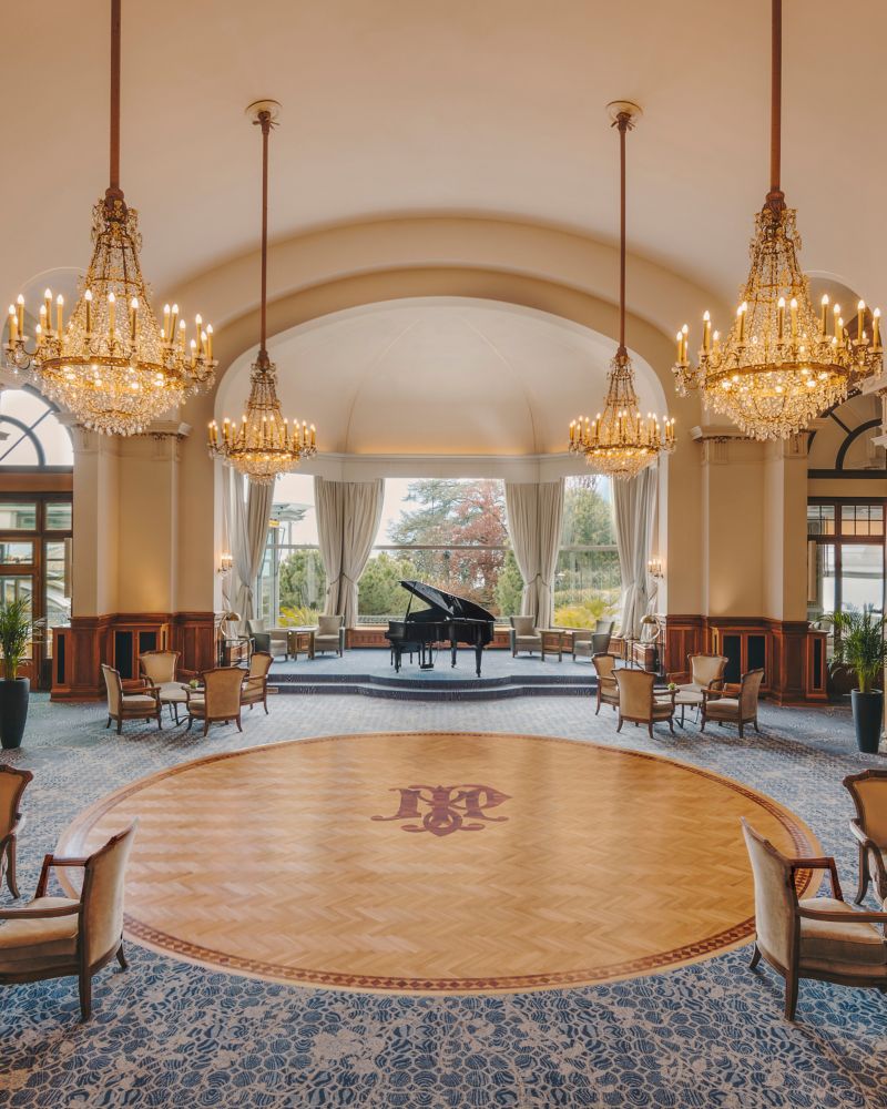 A majestic 200 m² hall with a fireplace and elegant piano, where music legends have performed during the Montreux Jazz Festival. Its tall pillars offer a warm welcome for cocktails, coffee breaks, or brunches, with access to nearby gala rooms and the MP's Bar & Grill restaurant terrace.