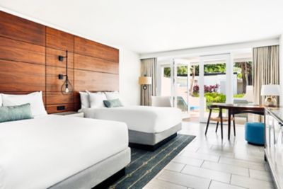Esta habitación, diseñada para inspirar la relajación de la isla, está rodeada por preciosos jardines y piscinas. Relájese en el balcón, ubicado a unos pasos de la piscina Well and Being.