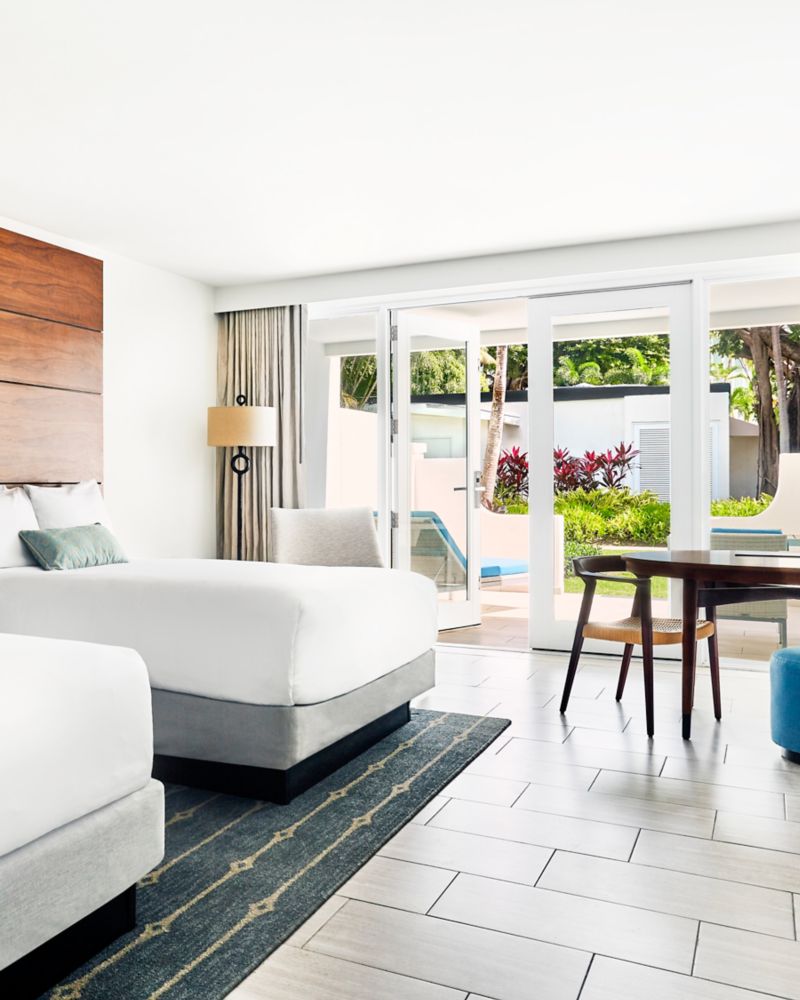 Disfrute de un oasis de relajación en el Caribe con una escapada a nuestro paraíso en San Juan en una habitación con dos camas queen size y una acogedora zona de estar.