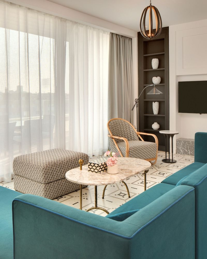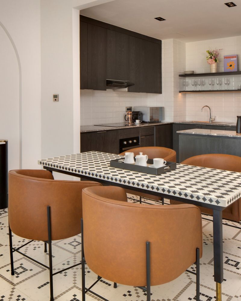 Un elegante espacio urbano con una lujosa cama king size, sala de estar con luz natural y una elegante cocina. Funciones inteligentes, productos de baño premium y detalles cuidados para garantizar su comodidad con los inconfundibles servicios Fairmont.