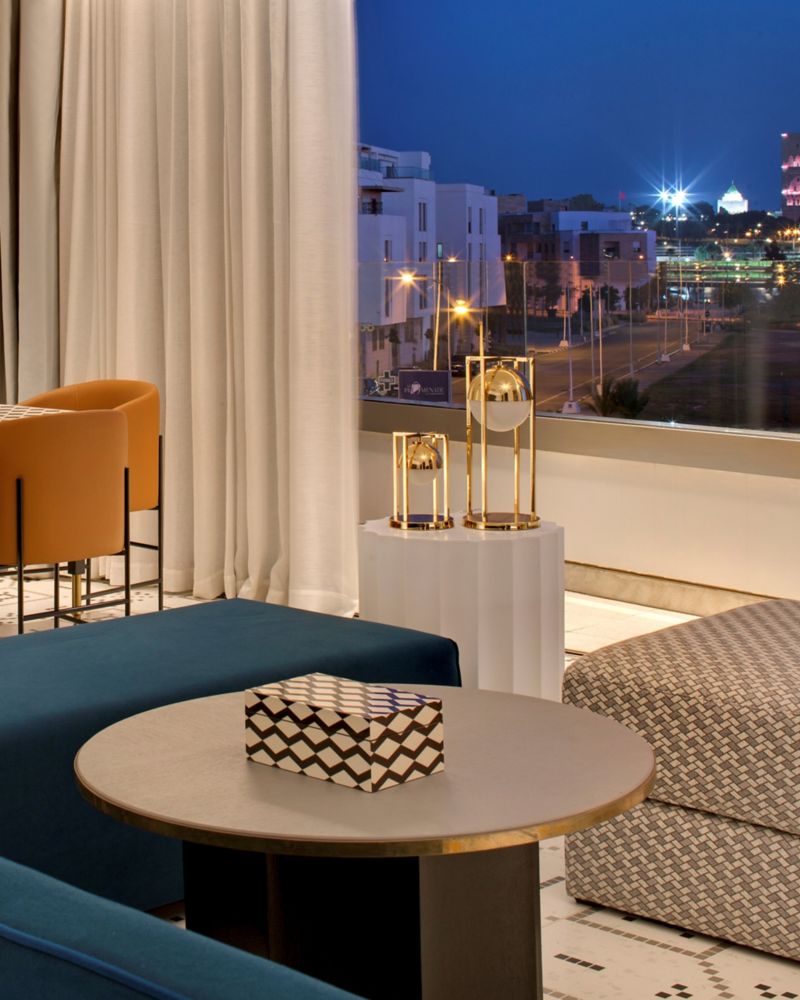Un elegante espacio urbano con una lujosa cama king size, sala de estar con luz natural y una elegante cocina. Funciones inteligentes, productos de baño premium y detalles cuidados para garantizar su comodidad con los inconfundibles servicios Fairmont.