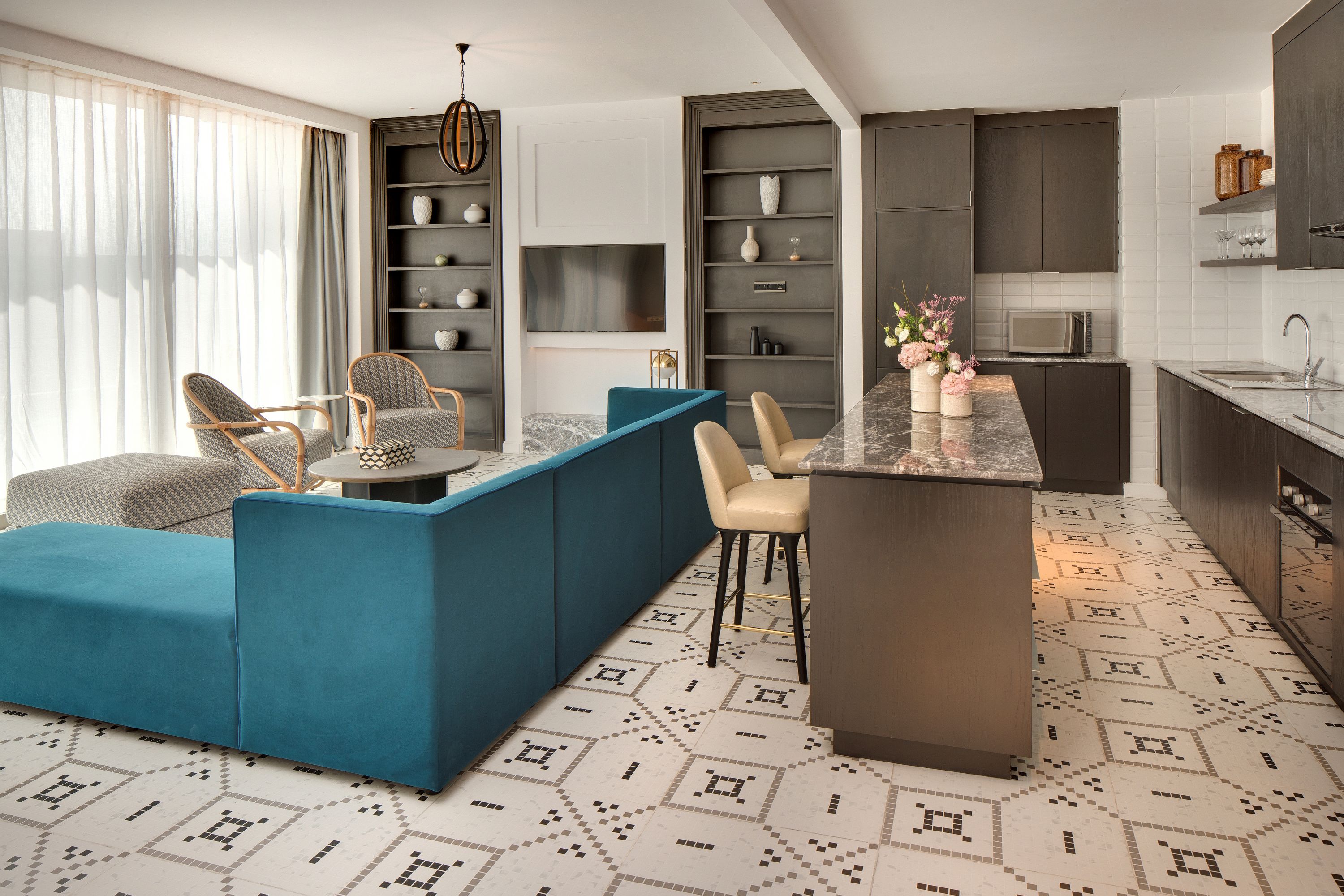 Tres elegantes dormitorios, una cocina lista para uso profesional y un generoso espacio de estar. Baños inspirados en spa, tecnología inteligente y el servicio exclusivo de Fairmont crean un refugio acogedor y de lujo.