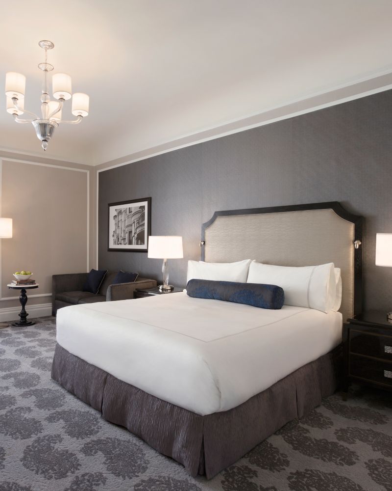 Ubicadas en el célebre edificio principal y con impresionantes techos abovedados de 4,27 metros (14 pies), estas habitaciones con ventanas abatibles ofrecen vistas a la ciudad de San Francisco y al barrio de Nob Hill. Con una cama King, amplios armarios, escritorios grandes, baños de mármol y sofá cama, estas habitaciones son ideales para trabajar o divertirse.