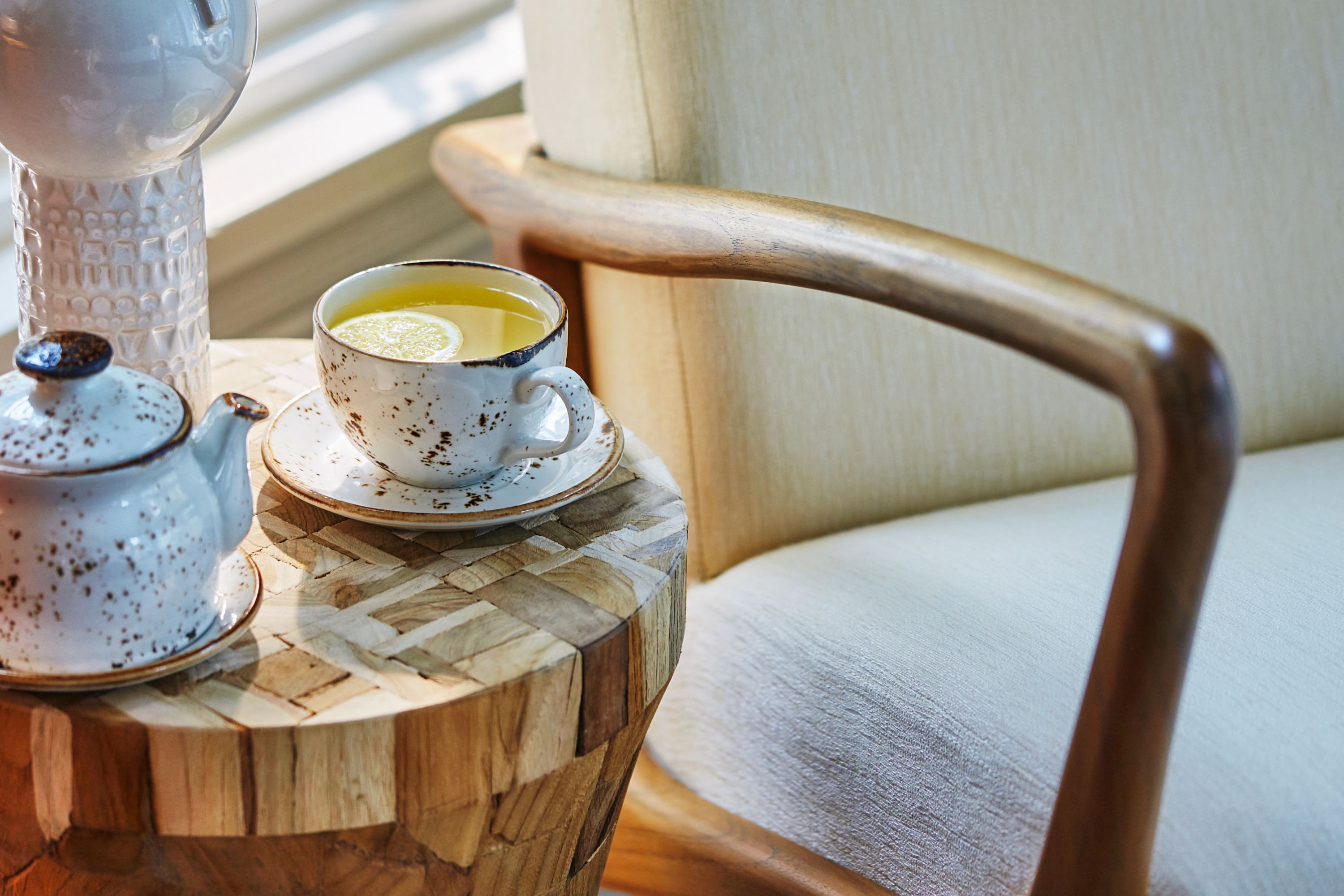 Habitación ubicada en la planta baja del jardín Miramar con patio amueblado, secador Dyson, lavabo doble, productos de baño Le Labo y cafetera Nespresso