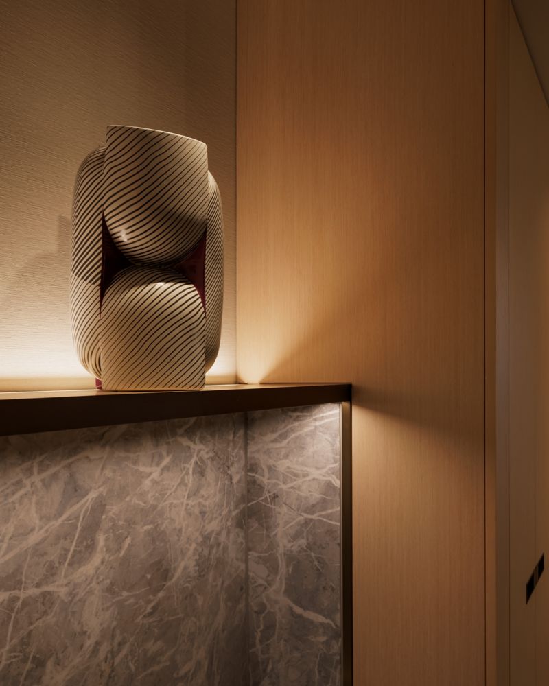 The room features flexible space planning with an Engawa-inspired seating area that blends indoors and outdoors. This design creates the perfect environment for relaxation any time of day or night.