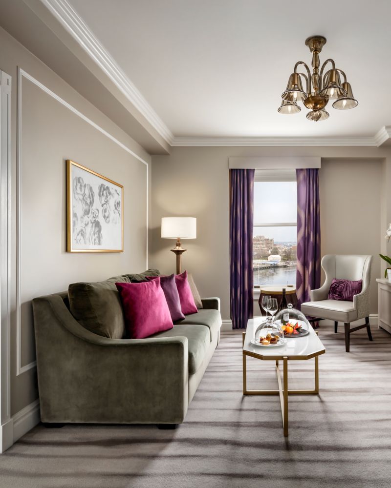 Esta suite única ofrece un salón de concepto abierto: sala de estar de lujo con vistas al puerto desde la 6.ª planta. Acceso al salón Fairmont Gold, desayuno y canapés. Habitaciones contiguas a petición para disponer de más espacio (máx. 4 personas)