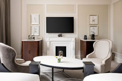 Esta suite cuenta con dos habitaciones con camas king size, terraza privada amueblada, barra para cócteles, cafetera y tetera, smart TV de 55", tocador y albornoces de lujo.