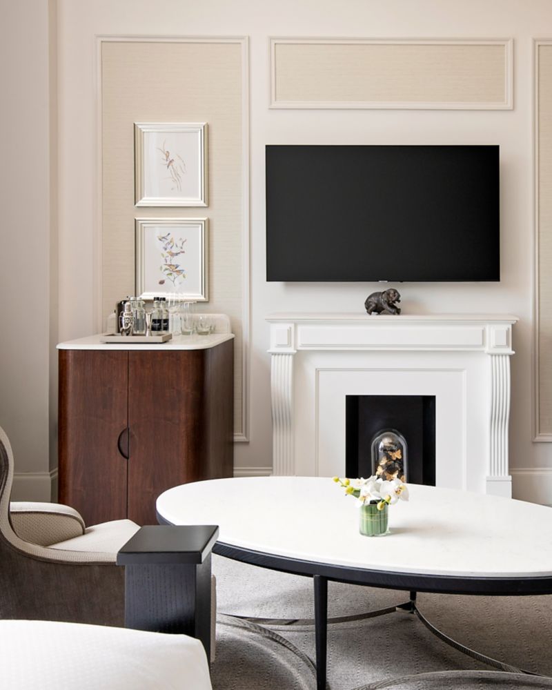 Estas lujosas suites cuentan con una cama king size, barra para cócteles, cafetera y tetera, smart TV de 55", tocador y albornoces de lujo