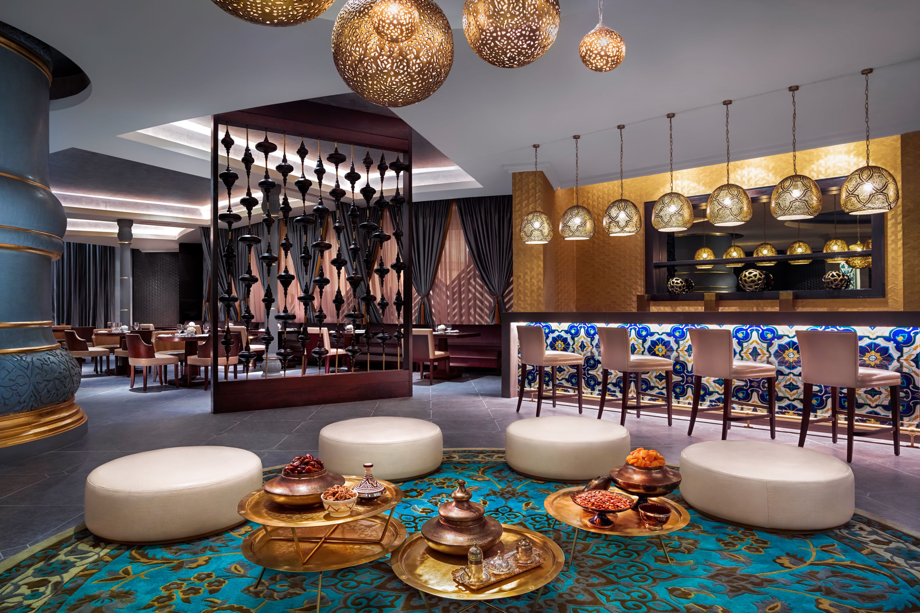 Fidèle à la tradition du thé de l'après-midi chère à Fairmont, l'établissement propose une carte de thés personnalisée, associée à un service prévenant. Devenu une référence dans les émirats du Nord, il sert des plats créatifs de type tapas.