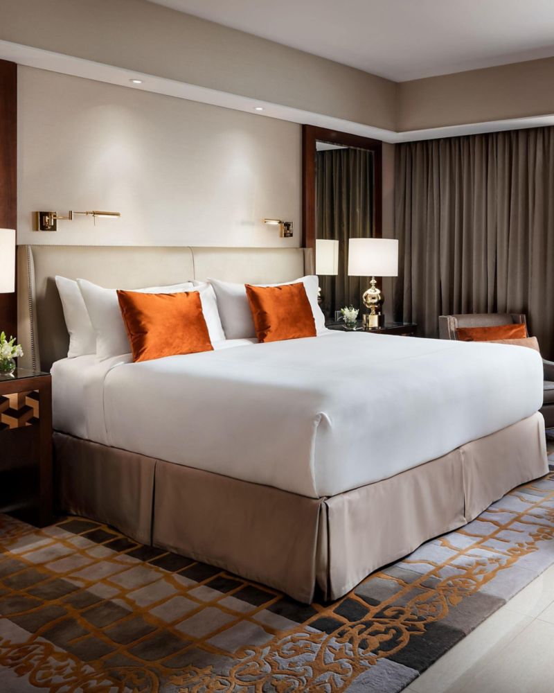 42 m² , balcon, literie de luxe, douche à effet pluie, baignoire, vue sur le golfe Persique.