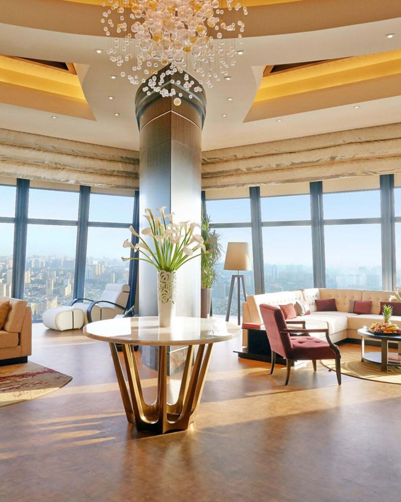 Discover unparalleled luxury in Baku. Our exquisite rooms, suites, and serviced apartments are crafted to exceed 5-star standards offering radiant natural light and panoramic views of the Caspian Sea and the vibrant city. Elevated on the highest floors, our opulent suites redefine sophistication with their spacious elegance and exceptional features