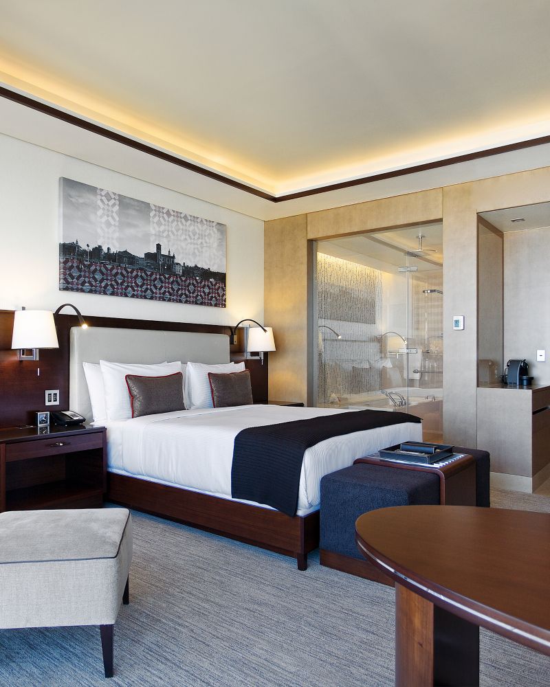 50sqm/538sqft rooms with Caspian Sea view include accessible amenities: handrails in shower, no bathtub, emergency button by the toilet and emergency indicator in bedroom, and lowered peep hole. Exclusive Fairmont Gold lounge access.