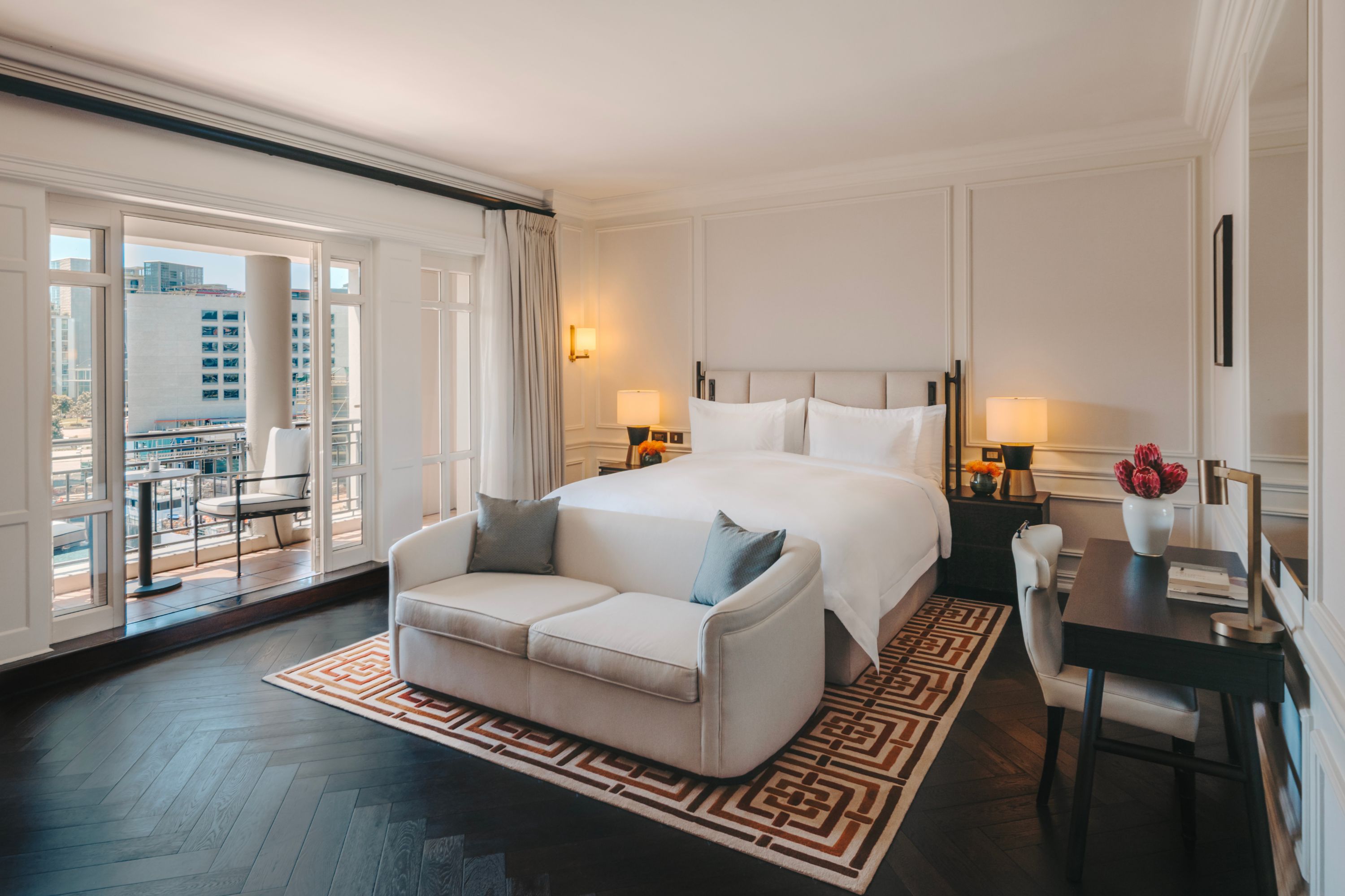 Exquisitely detailed suite with a balcony, separate lounge and dining area. It offers a sophisticated and memorable escape for solo travellers and couples alike.