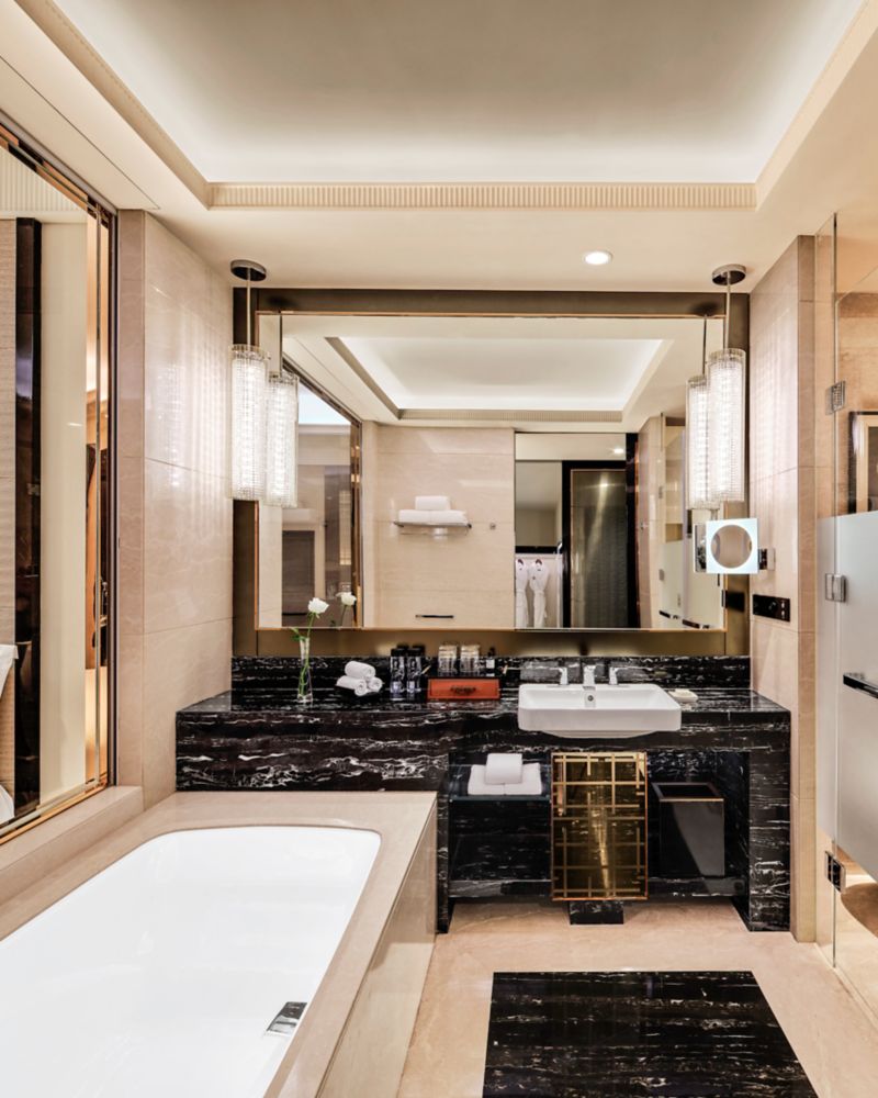 The guest room is spacious and elegant. Located on the 28th to 31th and 42th floors, the room area is 45 to 50 m², equipped with a 1.83m*2m king bed or two 1.52m*2m queen bed. With Fairmont Gold access. Each room features a chic walk-in closet, touch panel controlled toilet and high-tech amenities.