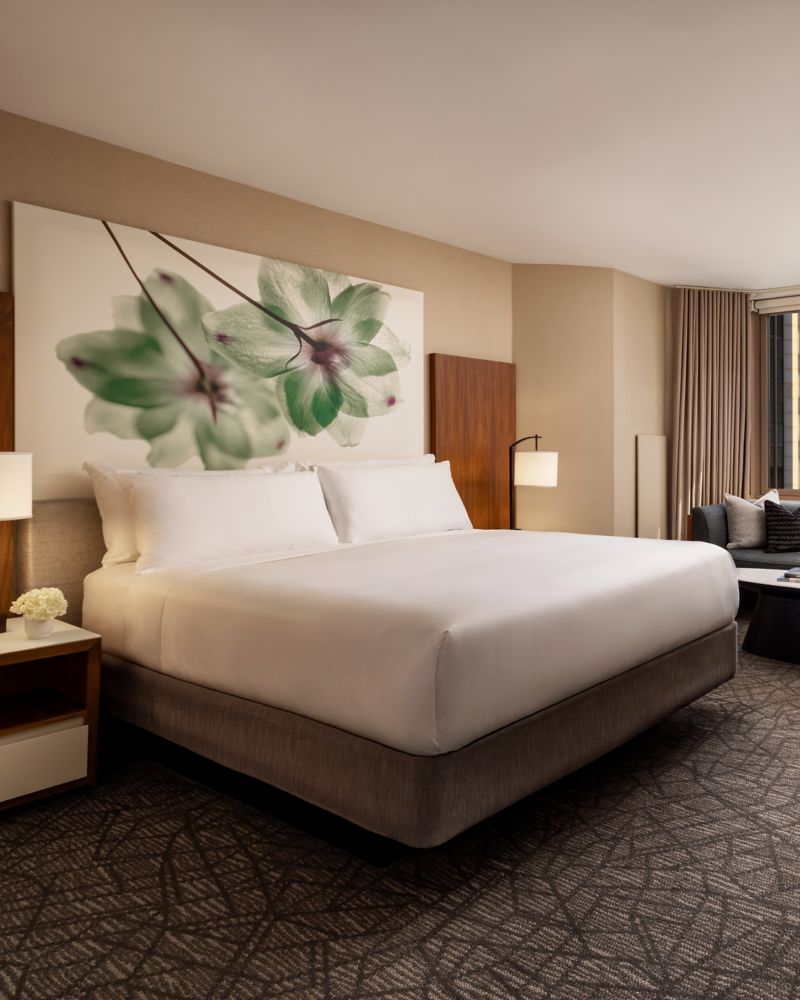 Récemment rénové, vue sur Millennium Park ou le lac Michigan. Accès au Fairmont Gold Lounge avec petit déjeuner chaud et en-cas en soirée. Douche à l'italienne et coin vasque pour plus de confort. Chambres spacieuses avec salon et espace de travail.