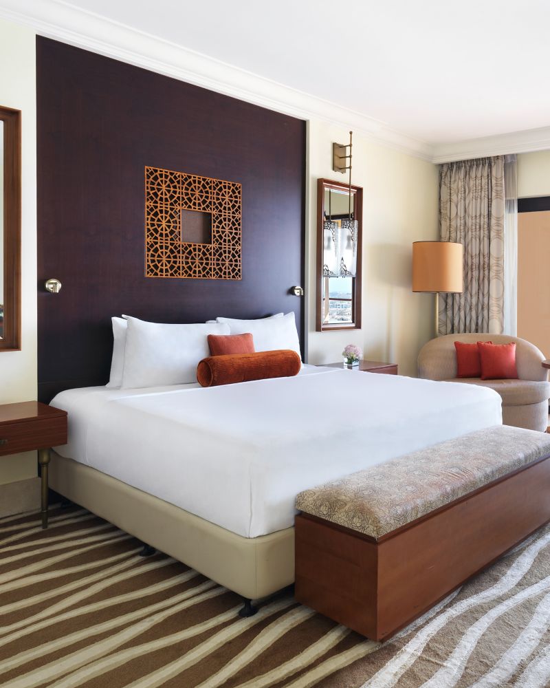 Spacieuse et d'inspiration arabe, cette chambre Familiale Héritage est le havre de paix idéal, avec ses couleurs chaudes, ses détails élégants et deux balcons privés surplombant les résidences Palm.