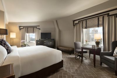 1 lit King Size. Vue sur la ville. 8e étage. Douche spa moderne. Accès exclusif au salon Fairmont Gold.