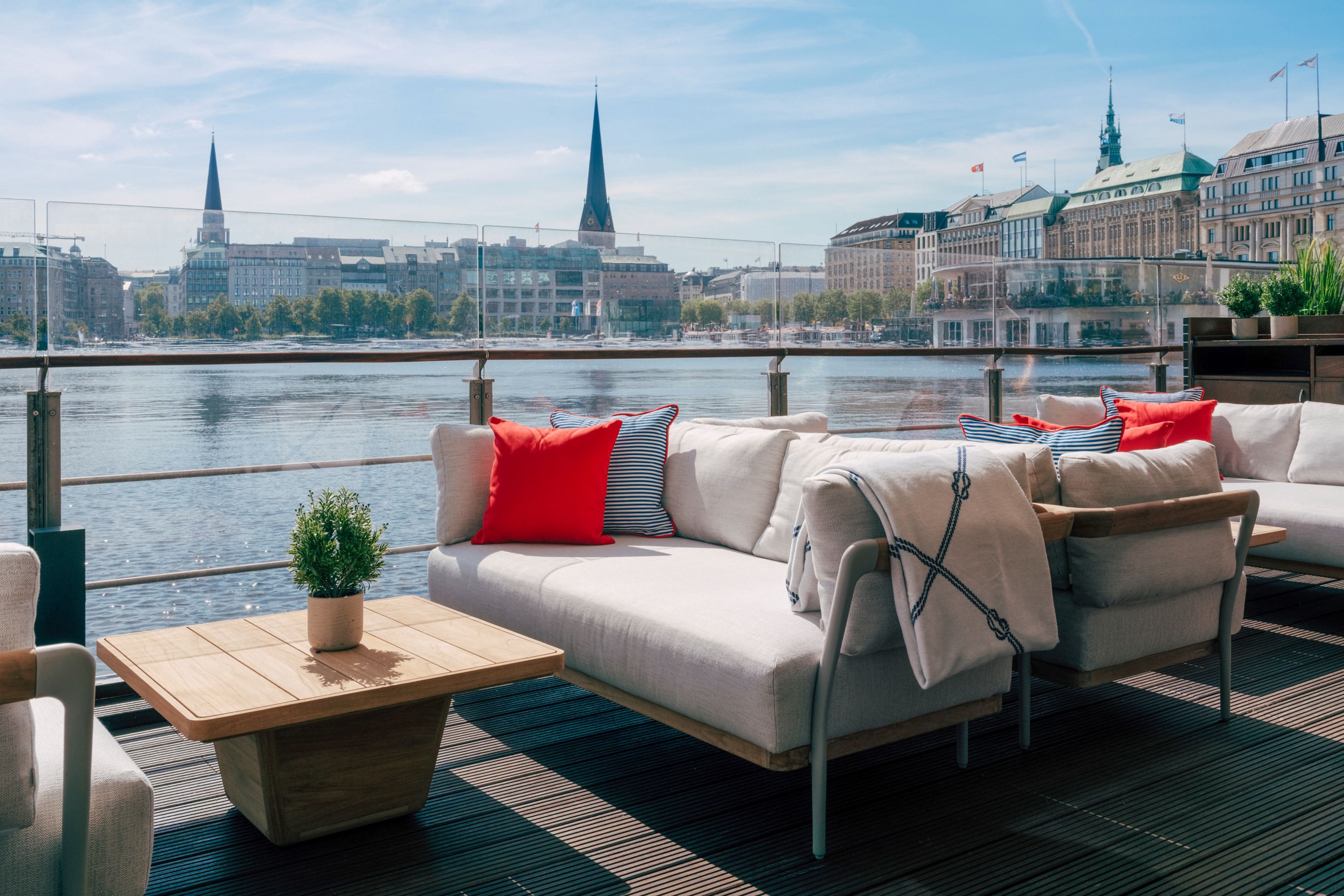 Le Jahreszeiten Terrace dispose d'un salon extérieur pouvant accueillir 80 personnes. Quand le temps se rafraîchit, des radiateurs extérieurs offrent une chaleur et un confort agréables pour profiter d'une délicieuse cuisine et d'un excellent service.