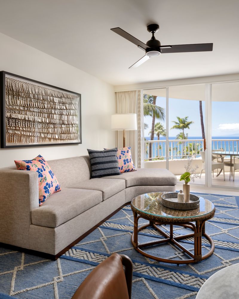 Spacious 860 square foot one-bedroom suite accommodation with ocean views from the large private lanai.