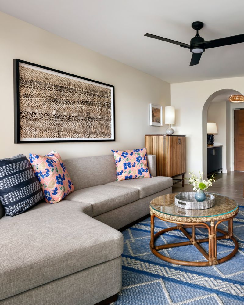 Spacious 860 square foot one-bedroom suite accommodation with partial or angled ocean views from the large private lanai.