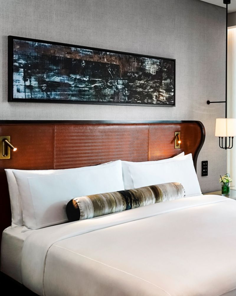 Chambre de style contemporain surplombant Istanbul à travers de grandes baies vitrées, avec douches à effet pluie et baignoire ou hammam privé, lit King size ou lits jumeaux. Chambres accessibles disponibles /40 m²