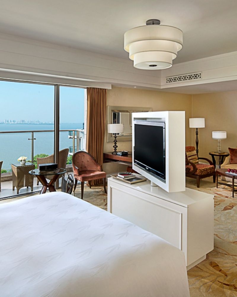 La chambre offre une vue idyllique sur le lac Yangcheng et un panorama à couper le souffle sur le coucher de soleil. La plupart des chambres sont équipées d'un balcon privé, de baies vitrées, d'un matelas Sealy et d'une baignoire.