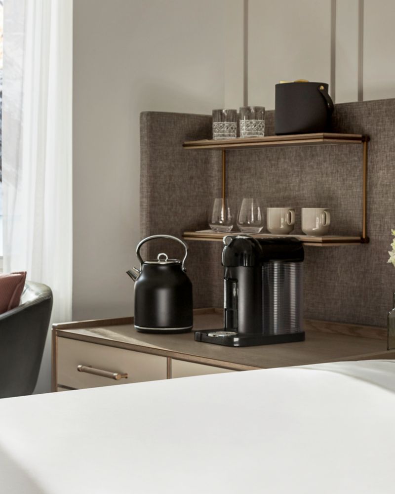 Chambres spacieuses de 41 m² situées dans l'aile Mount Temple. Accessible en fauteuil roulant. Barres d'appui dans la salle de bains. Miroir de maquillage réglable, judas à hauteur ajustée, espace sous le lavabo. Avertisseur incendie lumineux.